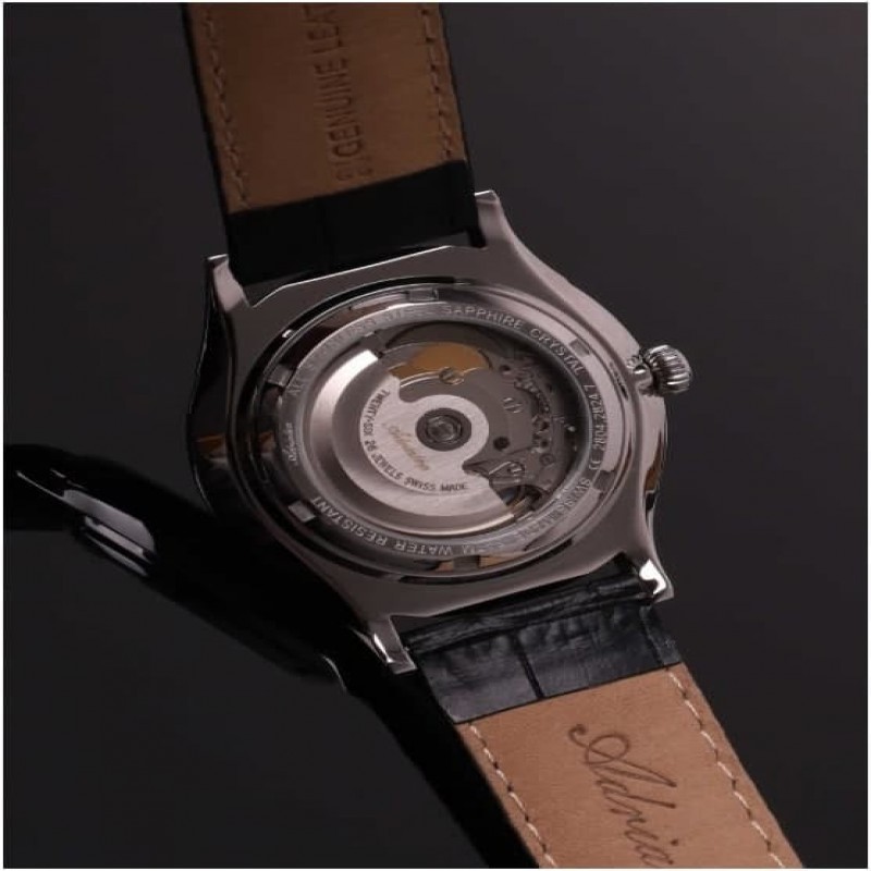 Adriatica- это швейцарский бренд часов с почти девяностолетней историей. Первые часы под маркой Adriatica были произведены в Швейцарии в далёком 1931 году. Среди постоянно обновляющегося модельного ряда Adriatica каждый сможет подобрать себе часы как для ежедневной носки под любой стиль одежды, так и модели для вечернего look'а.Дополнить личную коллекцию помогут часы в спортивной стилистике или в популярном авиационном дизайне. Все часы Adriatica производит из медицинской гипоаллергенной стали 316L и натуральной телячьей кожи в городе Camorino, который расположен в ШвейцарииБренд Adriatica входит в Федерацию швейцарской часовой индустрии (Federation of the Swiss Watch Industry FH). Статус бренда Adriatica подтвержден постоянным участием в главной часовой выставке Мира BASELWORLD проходящей в Швейцарии, а также в региональных выставках в более чем 90 стран МираМодель механическая с автоподзаводом (механизмETA 2824-2). Сарфировое стекло, ремень из натуральной кожи с застежкой-пряжкой.