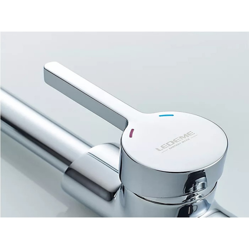 Смеситель для кухни Ledeme один из самых популярных среди сантехники. Благодаря вращению излива на 360 градусов, этот смеситель для раковины универсально подойдет к мойкам практически любых размеров и форм. Корпус крана изготовлен из высококачественной латуни (арт. 34478687 (песочный), арт. 34478307 (черный), арт. 34478449 (белый),арт108150972(золото). Из нержавеющей стали (арт. 31160369 (сатин), арт. 31158984 (сатин). Кран для кухни не требует постоянной полировки и легко очищается любой тряпкой. Аэратор легко откручивается, тем самим вы сможете в любой момент поменять или почистить его. Комплектация для всех смесителей одинаковая: смеситель, гибкая подводка -2шт., комплект крепежа.