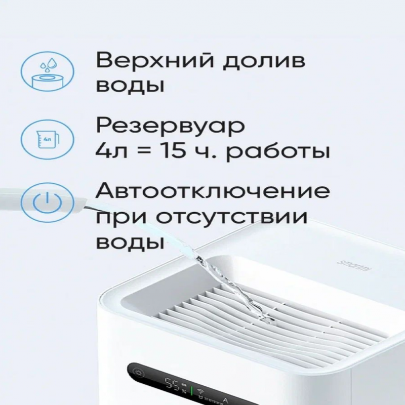 Воздухоувлажнитель бренда Smartmi обладает невероятно стильным, оригинальным дизайном и пригодится в каждом доме. Это официальная версия бытовой техники с гарантией от официального производителя. Портативное устройство с функцией ионизации и эффектом дождя создаст идеальный уровень влажности в помещении, принесет пользу как взрослым женщинам и мужчинам, так и детям. Изделие оснащено резервуаром для верхнего залива пресной или дистиллированной воды. Среди предложенного ассортимента можно выбрать приборы с баком 3 и 4 литра. Управление данной техникой возможно как с помощью led - дисплея, так и через приложение в смартфоне, с помощью голосовых помощников. Электрический очиститель воздуха оснащен режимом самоочистки. Фильтрация при этом является многоуровневой. Автоматический освежитель может использоваться в нескольких режимах: ночник, автомат и максимальное увлажнение. Мелкая бытовая техника для мойки воздуха обладает лаконичным дизайном и отлично впишется в интерьер детской комнаты, кухни, спальни, гостиной и любого другого помещения в квартире. Водный фильтр оснащен антибактериальным покрытием, обеспечивает защиту от размножения бактерий. Электрический настольный очиститель воздуха найдет место даже в офисном помещении, отлично будет смотреться на рабочем столе. Маленький распылитель оснащен датчиком - индикатором влажности воздуха и комнатной температуры, сенсорными кнопками для управления. Красивый ионизатор отлично справляется с увлажнением сухого воздуха, создаст здоровую среду. Ни одна традиционная экосистема не окажется столь многофункциональной. Это уникальная, универсальная климатическая система с ручным и дистанционным управлением, удобным выключателем, не вызывающая ни малейших сложностей в процессе эксплуатации в домашних условиях и офисе. Такая станция может использоваться для очистки воздуха как днем, так и во время сна. Она оснащена удобной панелью управления, работает путем подключения к розетке. Уникальный воздухоочиститель непременно пригодится всем, кто заботится о своем здоровье и способен выступить в качестве практичного презента для дорогих сердцу людей. Такой практичный презент можно преподнести в подарок как маме и папе, так и мужу, жене, другу, подруге, брату, сестре. Он вполне уместен на Новый год, Рождество, 8 марта, день рождения. У нас есть акции и распродажи, вы можете купить наши товары в подарок со скидкой! Развернуть описаниеОписание