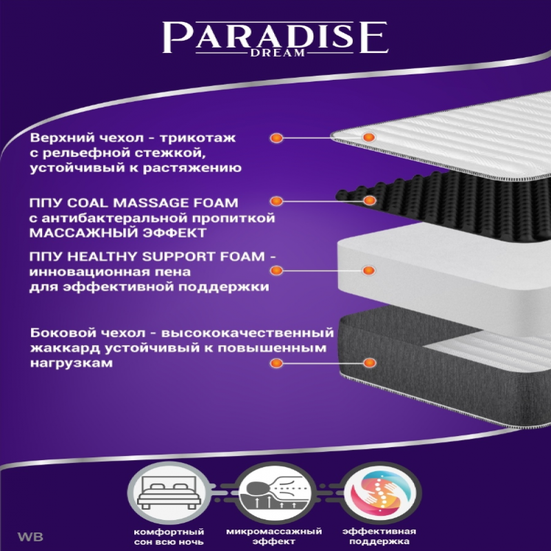 | Модель матраса | беспружинный; массажный эффект; Ортопедический и анатомический эффект |