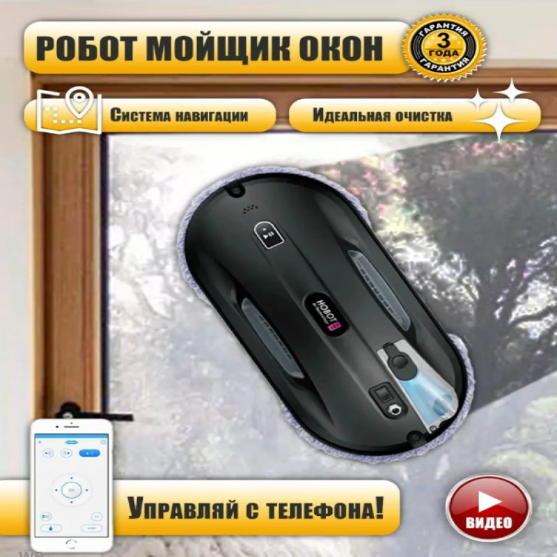 Hobot 388 - это робот для очистки окон, с новой запатентованной технологией ультразвукового распыления воды, которая может распылять воду на стекло до 15 мкм. Благодаря вакуумному двигателю внутри, двум специально разработанным чистящим колесам и салфеткам из микрофибры HOBOT-388 свободно перемещается по поверхности окна очищая пыль и грязь. В то время как винтовой разъем питания постоянного тока позволяет избежать потери мощности, встроенный аккумулятор может предотвратить падение робота с окна, и удержать устройство в течение 20 минут, если электропитания прекратилось. Вы можете использовать специально разработанную жидкость для мойки окон Hobot, или обычную очищенную воду. В любом случае, вы получите отличный результат, который вас приятно удивит.Для достижения наилучшего результата используйте Hobot 388 в солнечную погоду сначала на сухой поверхности без распыления, чтобы смахнуть верхний слой пыли и грязи. А после с жидкостью для мойки окон хобот, или водой, для того, чтобы отмыть сложные загрязнения, придать окнам неповторимый блеск и сияние. Вы можете управлять роботом при помощи пульта, который идет в комплекте, а так же со смартфона IOS или Android. При помощи программы, которую можно скачать бесплатно. Развернуть описаниеОписание
