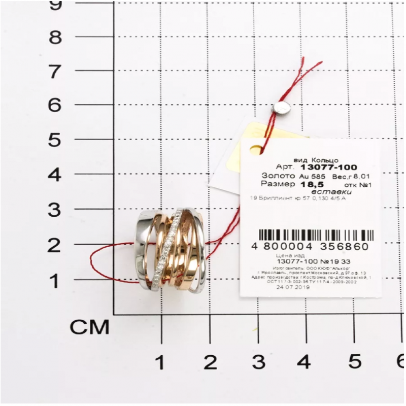 Стильное кольцо из красного и белого золота с бриллиантами, в нем вы не останетесь незамеченной! Несколько переплетённых колец создают иллюзию парящих в воздухе бриллиантов. Ширина шинки 17 мм, 19 Бриллиант Круг 57 0,137 120-200 4/5А. Каждое наше украшение - это маленький шедевр ювелирного искусства, инкрустированный природными бриллиантами премиального качества и контролируемого происхождения. Качество - наш главный приоритет! Поэтому украшения АЛЬКОР много лет подряд становятся лауреатом конкурса "100 лучших товаров России". Также в нашем ассортименте есть кольцо золотое, золотое кольцо женское, кольцо золотое 585 женское, золотое кольцо 585 пробы женская, золото 585, кольца золотое, кольцо с бриллиантом золотое, кольцо женское, кольцо на большой палец, кольцо с камнем, помолвочное кольцо. Украшения АЛЬКОР приходят в комплекте с фирменной упаковкой (конверт) - идеальный подарок любимой женщине, девушке, девочке на День рождения, Новый год, 8 марта, день всех влюбленных (14 февраля) - на любой праздник и повод. Значение веса и характеристики являются усредненными и могут отличаться от фактических. Развернуть описаниеОписание