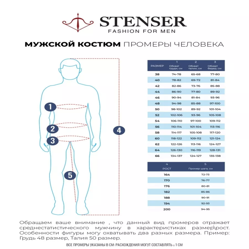 Классический деловой костюм двойка синего цвета для мужчины, изготовленный по традиционным европейским канонам. Лекала разработаны для большинства типовых размеров российских мужчин. Ткань верха 5149 -плотная, на подложке, немнущаяся. Модель Кю-7. Силуэт слегка приталенный на стандартную фигуру второй полноты - до 54-го размера, начиная с 56-го размера - третья полнота. Первая цифра маркировки, размер - полу обхват груди, вторая -рост. На пиджаке 2 пуговицы - застёжки, 2 шлицы сзади. Брюки классические без защипов на подкладке, линия посадки пояса брюк средняя, пояс составной. Рекомендации по уходу: Сухая химчистка.