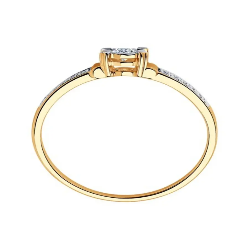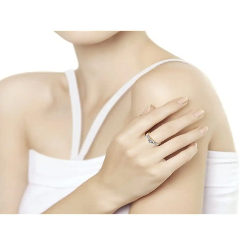 Женское золотое кольцо с бриллиантами. Стильное дизайнерское кольцо отлично подходят для повседневной носки, а также эффектно дополнят нарядный, вечерний, праздничный или свадебный образ. Современные ювелирные изделия легко сочетаются с любой одеждой. Украшения SOKOLOV (Соколов) приходят в комплекте с подарочной упаковкой, идеально подходят для подарка любимой женщине, девушке, девочке на День рождения, Новый год, 8 марта, день всех влюбленных (14 февраля) или любой праздник, и повод. Значение веса на фото и в характеристиках являются примерными и могут отличаться от фактического. Изделие выполнено из красного золота 585 пробы; вставка: бриллиант; Характеристики: 1 Бр Круг 57 2, 702, 80 0, 083 3/6 А, 12 Бр Круг 17 0, 901, 00 0, 046 2/3 А, 8 Бр Круг 17 0, 80*0, 90 0, 024 2/3 А. Свернуть описание