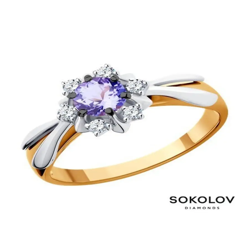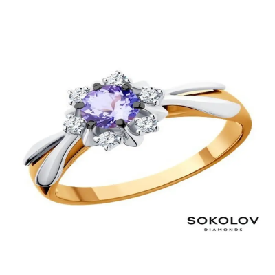 Женское золотое кольцо с бриллиантами и танзанитом. Стильное дизайнерское кольцо отлично подходят для повседневной носки, а также эффектно дополнят нарядный, вечерний, праздничный или свадебный образ. Современные ювелирные изделия легко сочетаются с любой одеждой. Украшения SOKOLOV (Соколов) приходят в комплекте с подарочной упаковкой, идеально подходят для подарка любимой женщине, девушке, девочке на День рождения, Новый год, 8 марта, день всех влюбленных (14 февраля) или любой праздник, и повод. Значение веса на фото и в характеристиках являются примерными и могут отличаться от фактического. Изделие выполнено из красного золота 585 пробы; Вставка: бриллиант, танзанит; Характеристики: 6 Бр Круг 57 0, 129 3/6 А, 1 Танзанит Круг 5, 00.